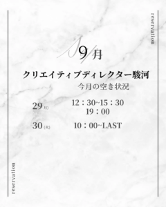 クリエイティブディレクター 駿河 の今月のご予約空き状況です☆