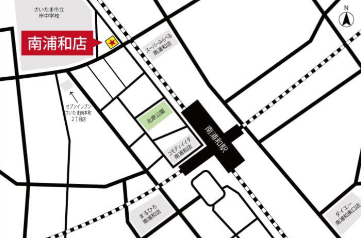 **南浦和駅「西口」**を出たら、駅を背にして右に真っ直ぐ